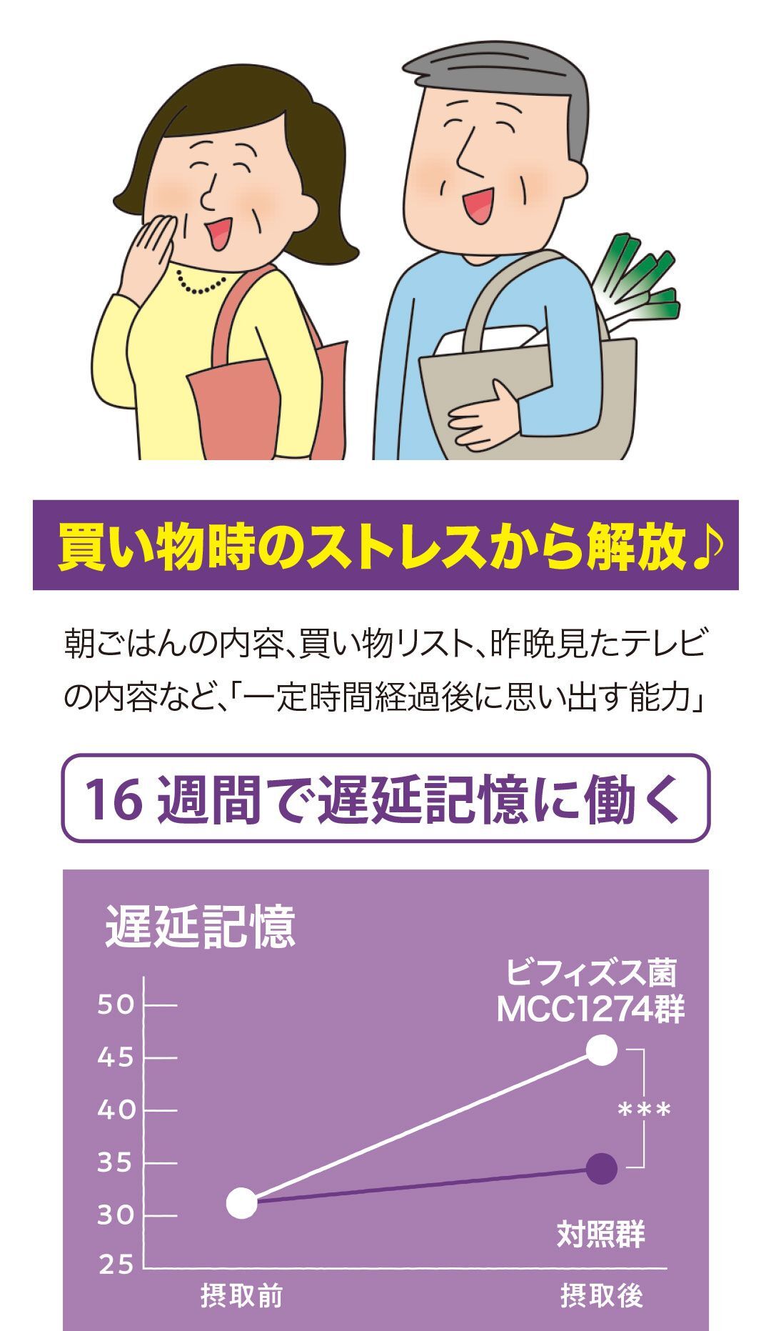 ビフィズス菌市場サプライヤーシェアNo.1※1、ビフィズス菌生菌体のみで記憶力を維持する働きが報告された世界初※2のビフィズス菌!